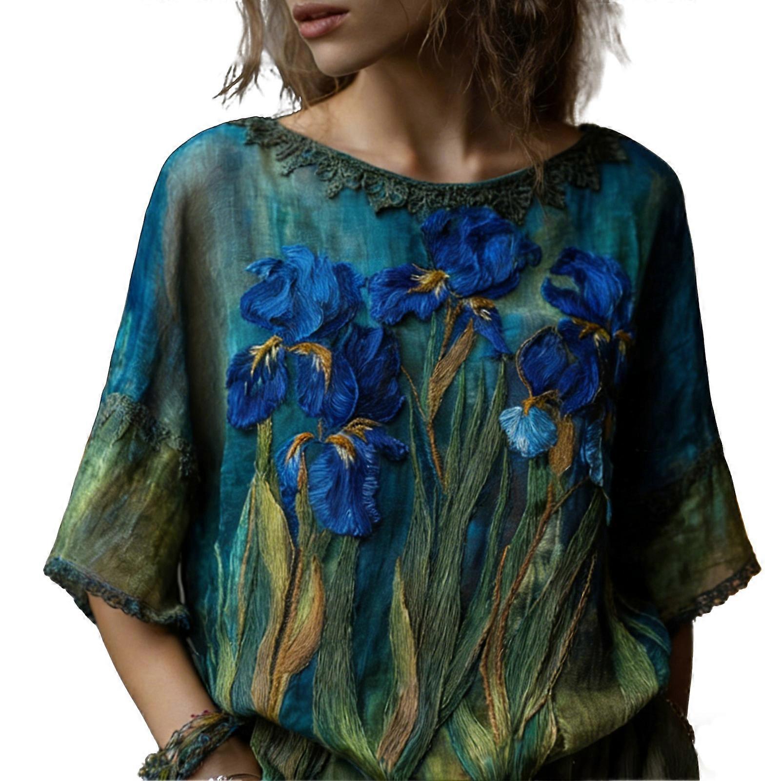 Women Tops Round Neck Short Sleeve Retro Floral Art Print Pullover Tops Loose Fit Soft Fabric Casual Summer Shirt