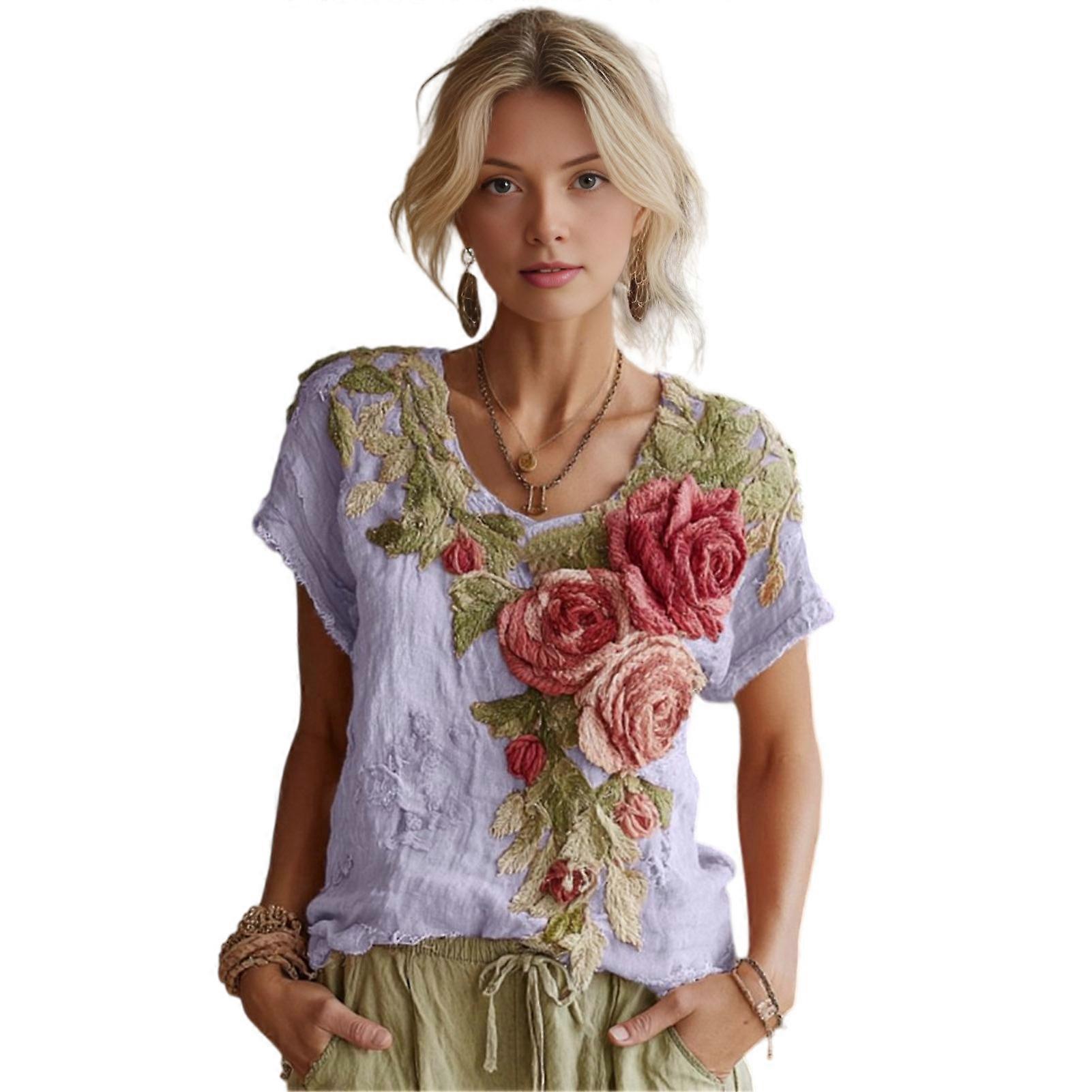 Women Tops V-Neck Short Sleeve 3D Digital Print Geometric Floral Pattern Tee Shirt Lightweight Summer Shirt Casual Wear