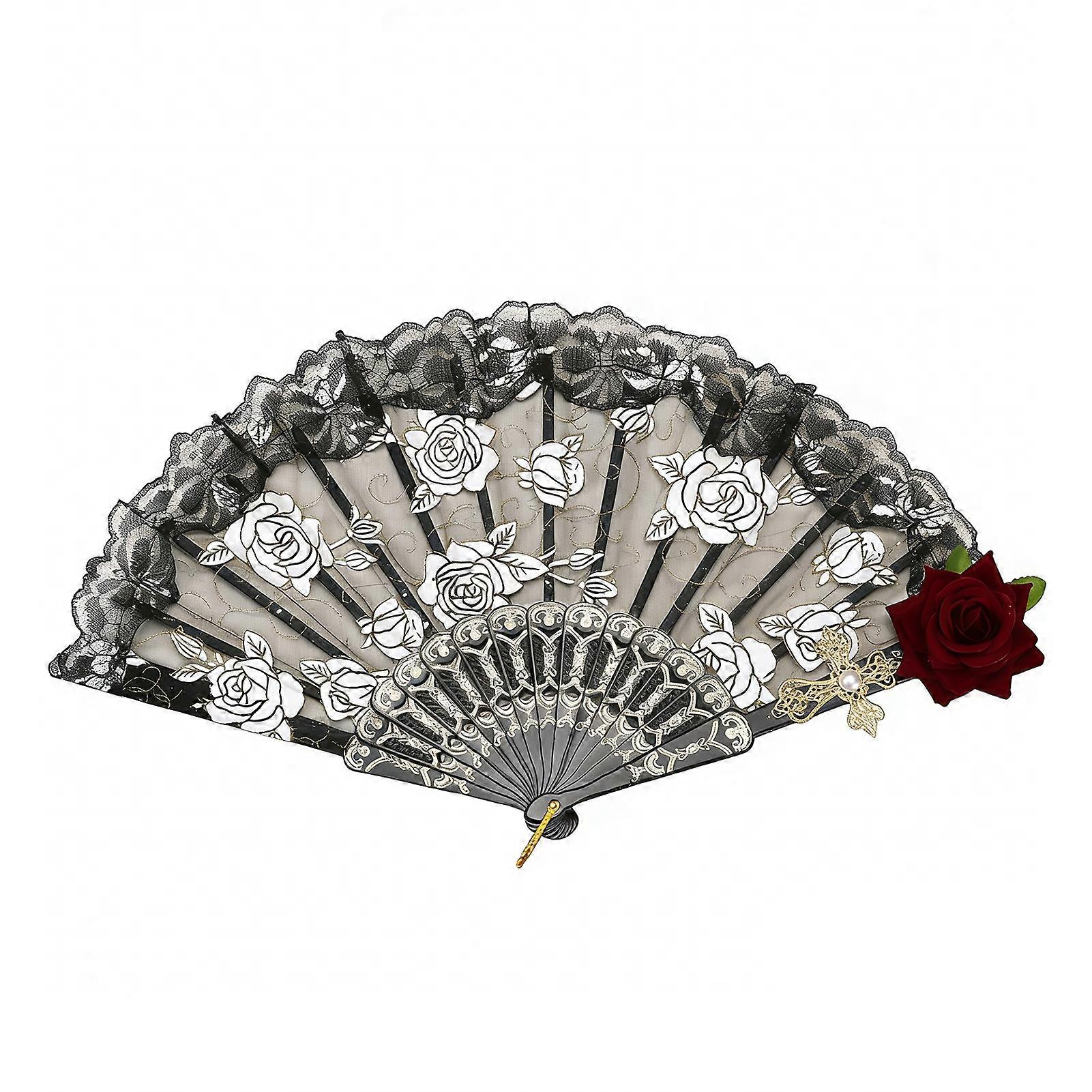 Elegant Classic Design: Featuring a hollow lace pattern and rose decorations, this fan embodies timeless sophistication. Its vintage inspired style makes it a standout accessory that complements formal attire or adds a refined touch to casual outfits. The artistic detailing highlights superb craftsmanship, making it both functional and visually charming. Compact and Portable Convenience: Designed with portability in mind, this folding fan is lightweight and small enough to fit effortlessly into handbags or travel pouches. Its easy to fold mechanism allows for quick assembly and storage, enabling users to stay cool on the go without sacrificing style. Perfect for warm days, outdoor events, or travel adventures where space is limited. Premium Materials and Durability: Crafted from high quality plastic and delicate lace, this folding fan combines strength with elegance. The scalloped bone structure provides exceptional flexibility, ensuring the fan maintains its shape and resists deformation even after extended use. This durable construction guarantees long lasting performance while offering a luxurious tactile experience. Versatile Usage Scenarios: Ideal for a wide range of occasions, this fan serves as an elegant accessory for weddings, dances, parties, and cultural events. It also functions beautifully as wall décor or party favors, adding charm and sophistication to any setting. Its multifunctional nature makes it a practical yet decorative item suitable for diverse environments. Thoughtful Gift Choice: This exquisite folding fan makes a unique and meaningful gift for friends, family members, or oneself. Its blend of durability, classic aesthetics, and portability ensures it will be appreciated by recipients who value both beauty and practicality. Perfect for special occasions or as a keepsake that celebrates elegance and tradition. Description: Crafted from high quality plastic and delicate lace, this folding fan combines durability with elegance. The scalloped bone frame offers excellent flexibility, ensuring long lasting shape retention. Featuring a classic hollow lace design and roses flower decorations, it exudes vintage charm and sophistication. Compact and lightweight, this fan is easy to carry in your bag, making it an ideal accessory for staying cool and stylish on the go. Perfect for weddings, dances, parties, or as a unique gift, this exquisite folding fan adds a touch of grace to any occasion. Item Name: Folding Fan Material: Plastic Style: Retro Features: Flower Decor, Folding, Lightweight Size Details: Arc Length: 45cm/17.72" (Approx.) Side Length: 25cm/9.84" (Approx.) Notes: Due to the light and screen setting difference, the item's color may be slightly different from the pictures. Please allow slight dimension difference due to different manual measurement. Package Includes: 1 x Folding Fan