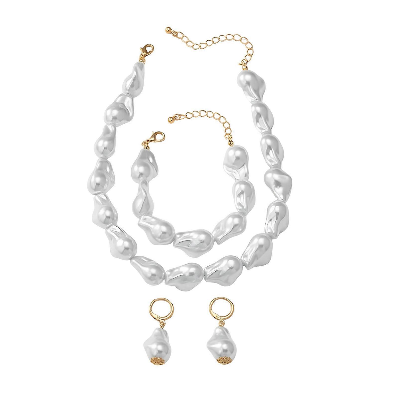 Women Faux Pearl Necklace Earring for Indoor Use Lightweight Practical