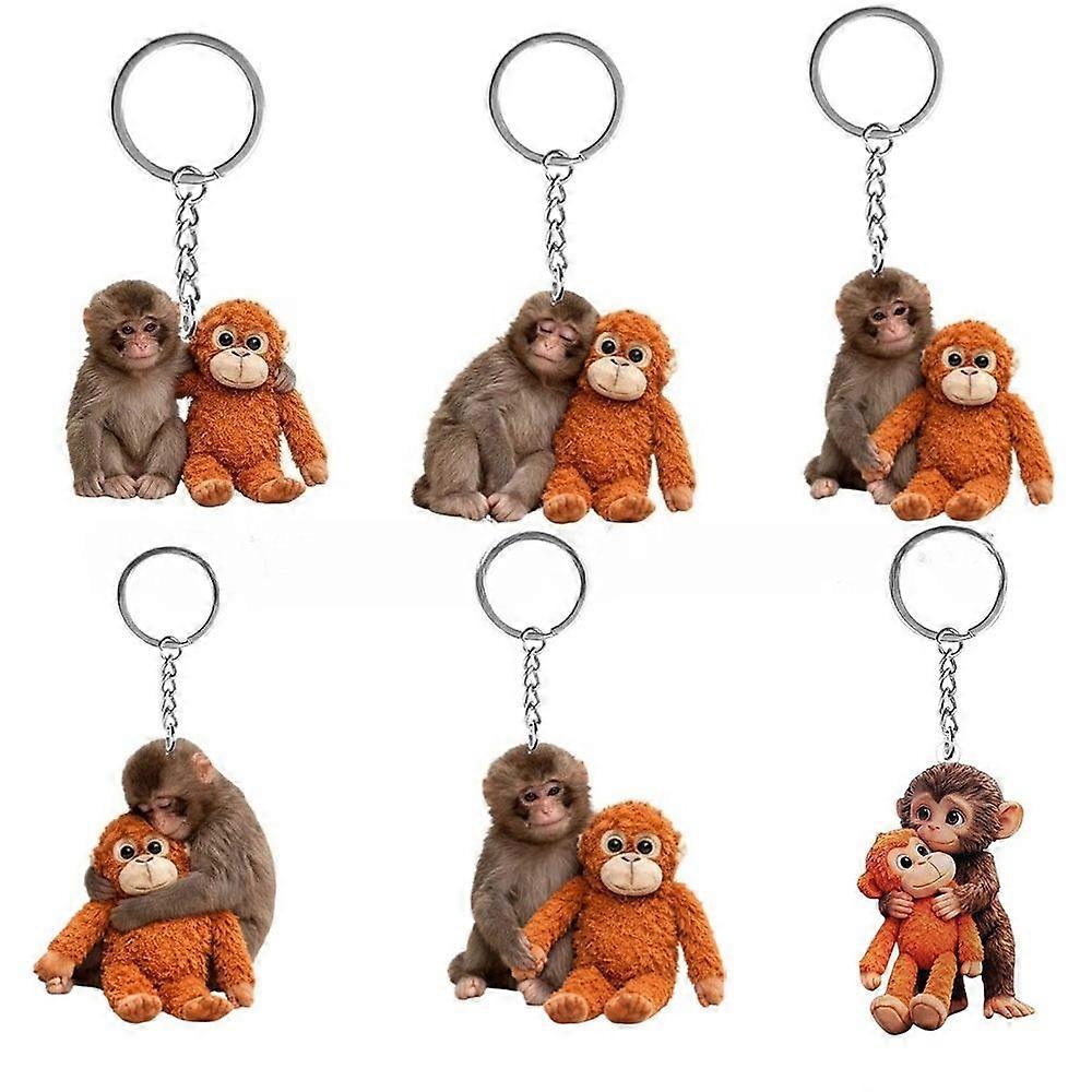 6Pcs Punch Monkey Keychain, 2D Acrylic Cute Mini Stuffed Animal,Team Punch HuggingKeychain,Protect Baby Punch's Plush Toy