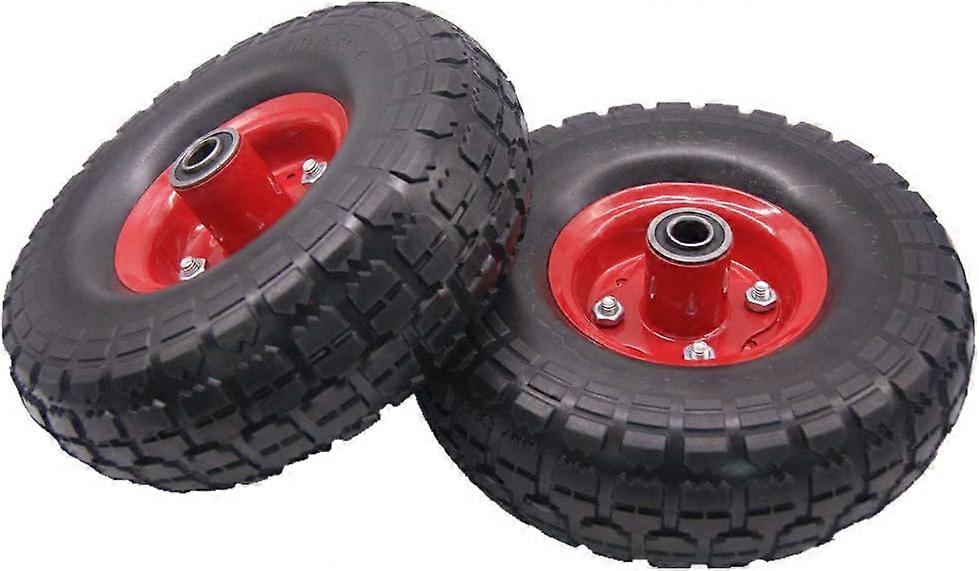 4.10/3.50-4" Flat Free Hand Truck Tire on Wheel for Dolly Hand Cart 2 New 10" Replacement Tire with 5/8" Center Shaft Hole