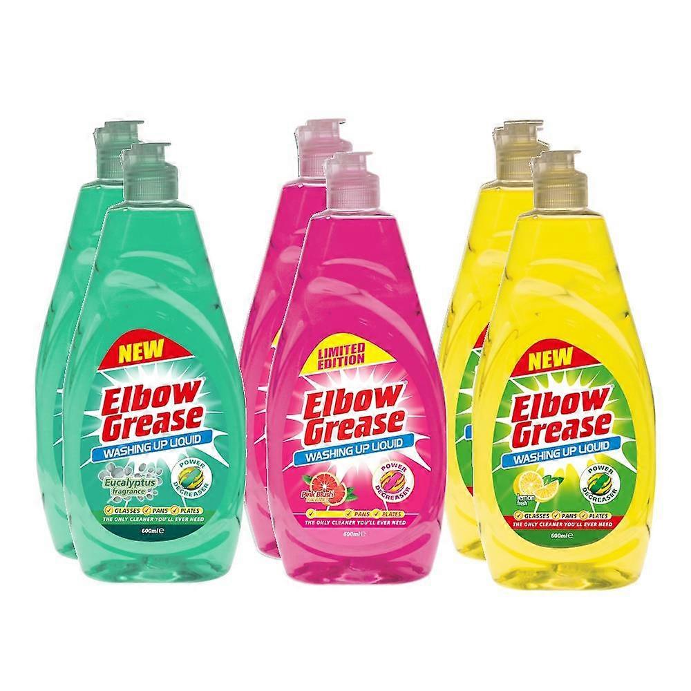 Elbow Grease Washing Up Liquids 600ml: Eucalyptus x 2, Pink Blush x 2, Lemon Fresh x 2