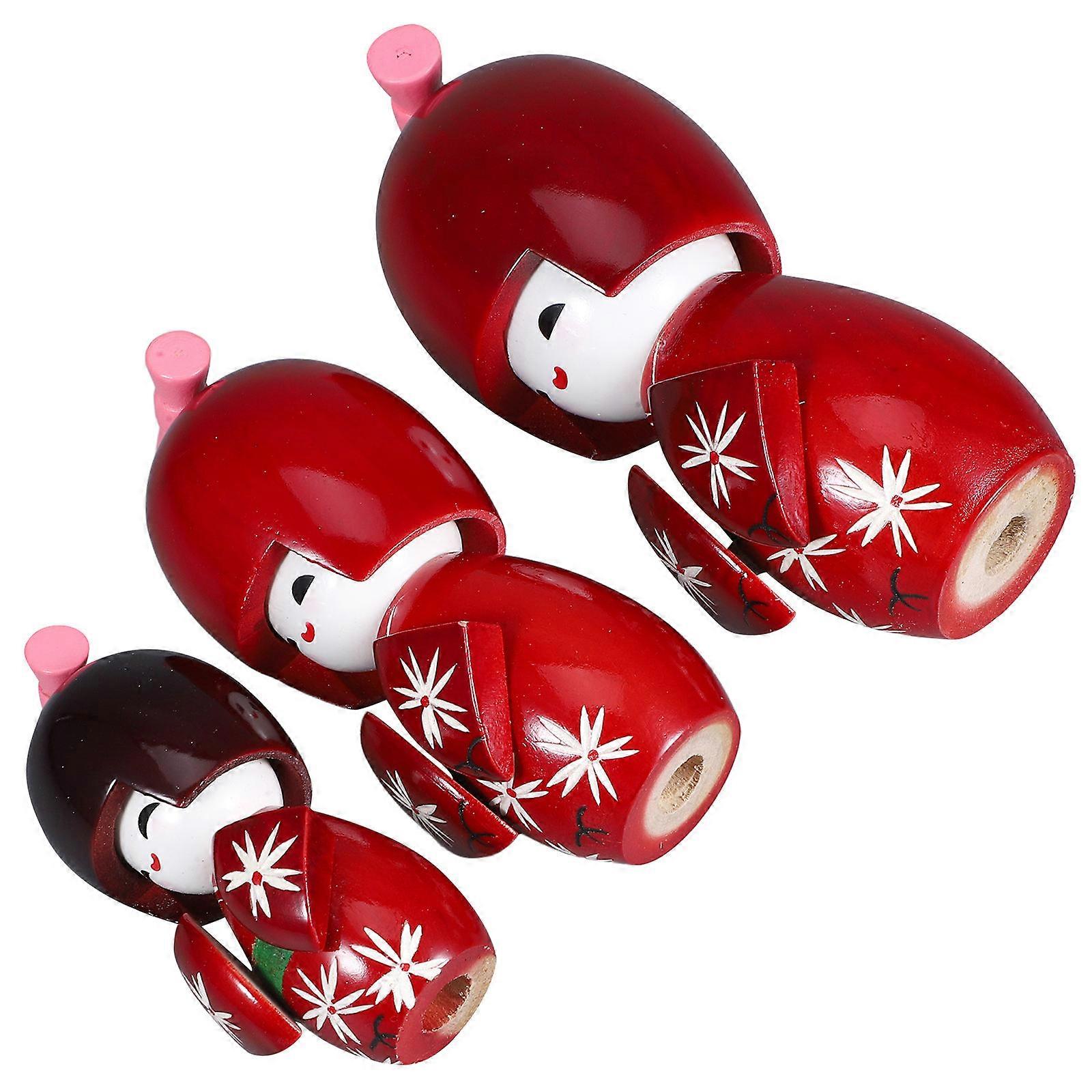 Japanese Traditional Doll Kimono Doll Decoration with 3Pcs Wooden Ornaments