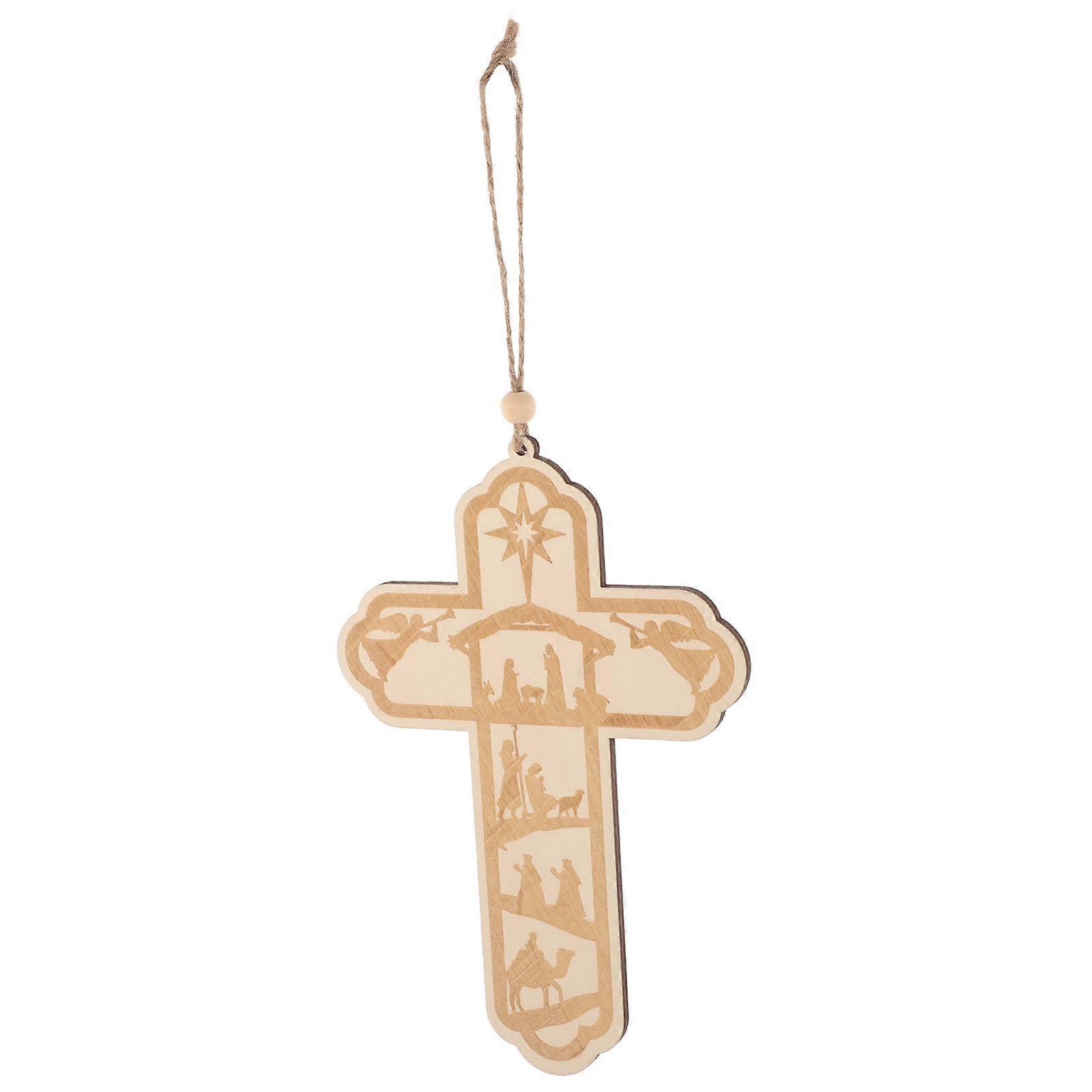 Beige Wood Cross Craft Wall Pendant for Decoration Use