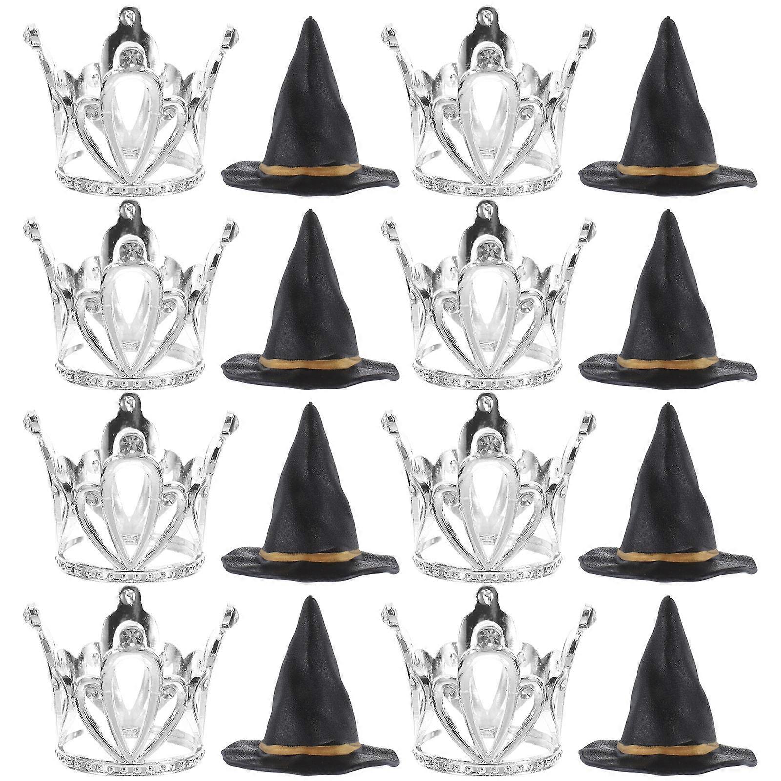 Dessert Topper Mini Tiara Cupcake Decorations Witch Hat And Crown For Halloween Party 4.50X3.50X3.50CM Cake Decoration 24Pcs