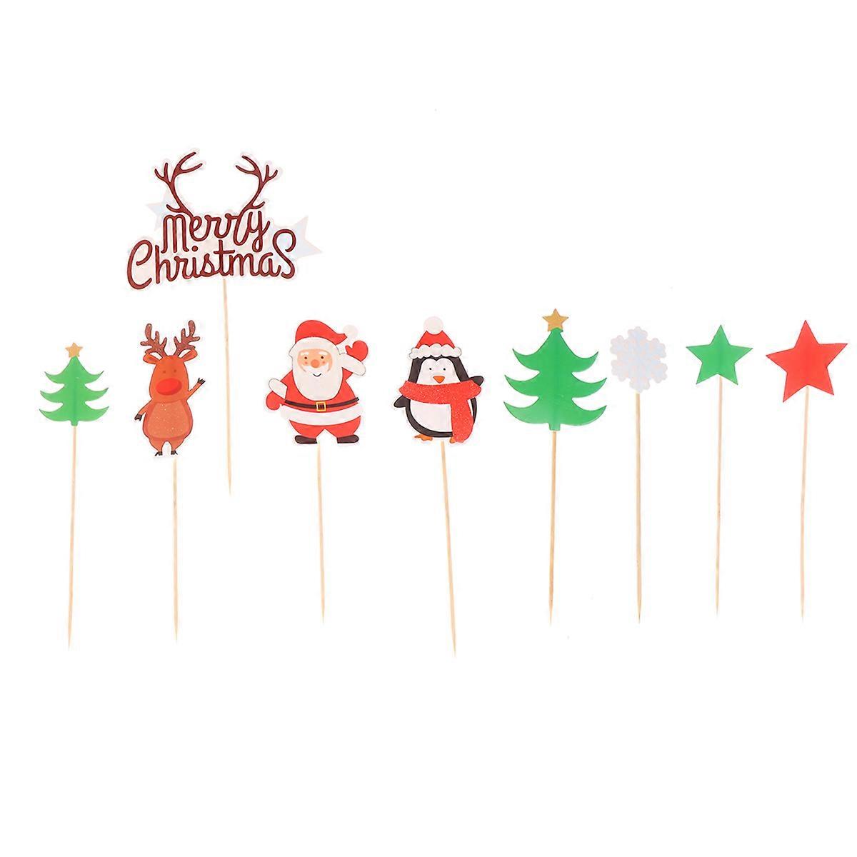 Christmas Cake Toppers Merry Christmas Cake Picks for Decoration 9Pcs Set