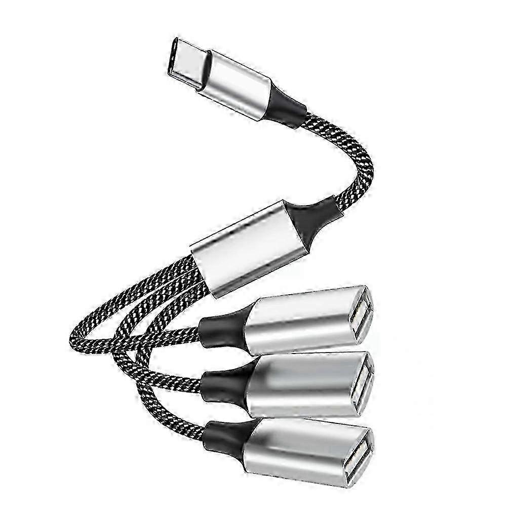 4-Port USB 2.0 Hub Aluminium Alloy Braided Cable Compatible with Laptop, Tablet, Phone