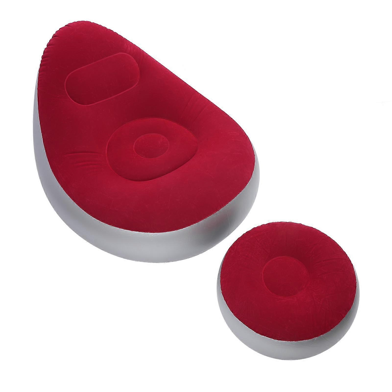 Inflatable Lounge Chair Portable Folding Blow Up Sofa with Footstool for Indoor Outdoor Balcony Backyard Camping Picnic Red