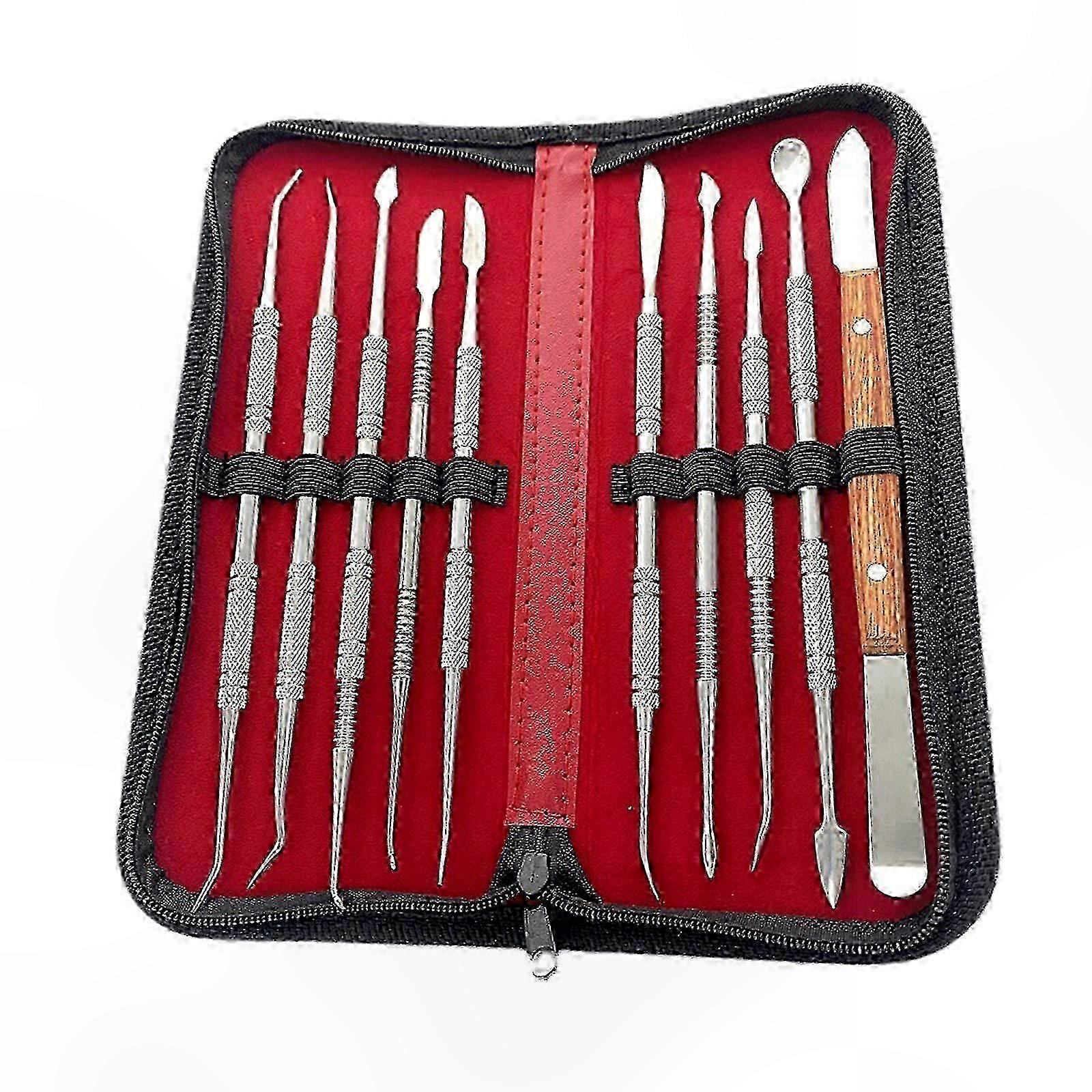 10-Piece Stainless Steel Wax Carving Tool Kit for Dental Professionals and Students in Storage Case