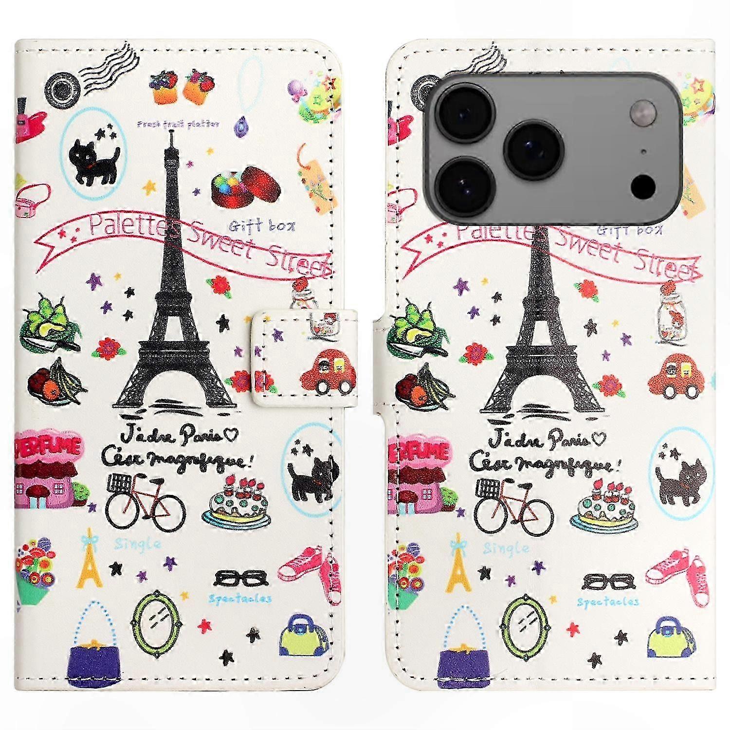 White Butterfly Design PU Leather Wallet Case for 17 Pro Max - Pattern Print Phone Cover