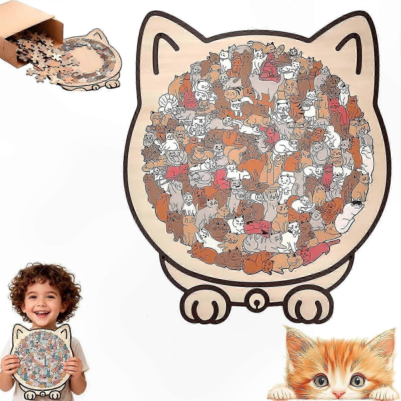 135-Piece Feline-Themed Wooden Puzzle, Cat Silhouette Design for Home Decoration & Gifts for Cat Enthusiasts