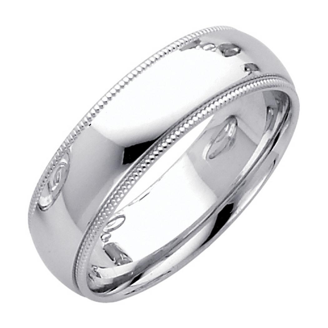 14k White Gold 6mm Milligrain Comfort-Fit Wedding Band Ring8-Wedding-Band for Women and Men