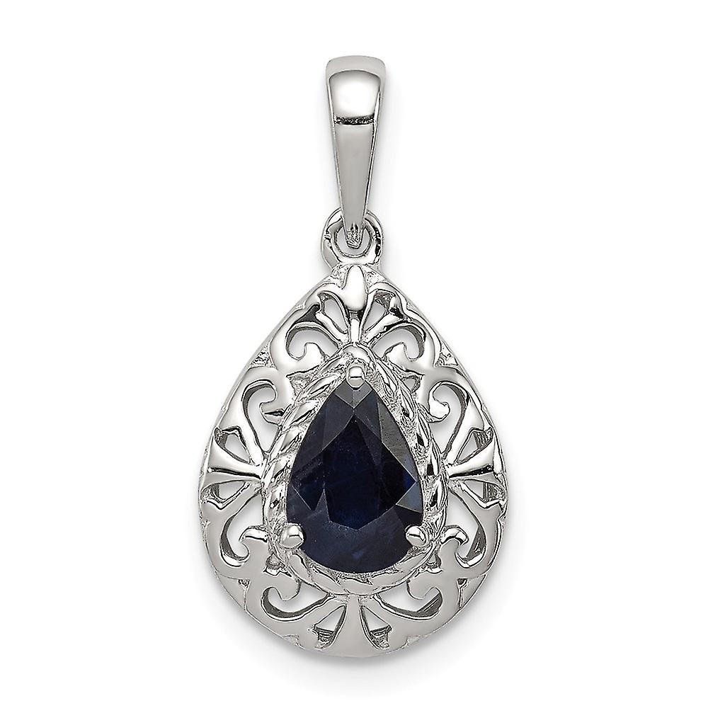 925 Sterling Silver Polished Rhodium Plated Sapphire Teardrop Pendant Necklace 21x12mm Wide Pendant for Women