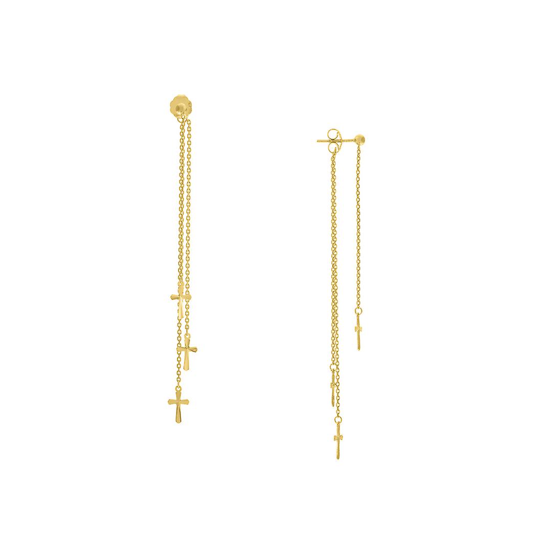 14k Yellow Gold Dangle Sparkle-Cut Mini Religious Faith Cross Earrings Dangle Earring for Women