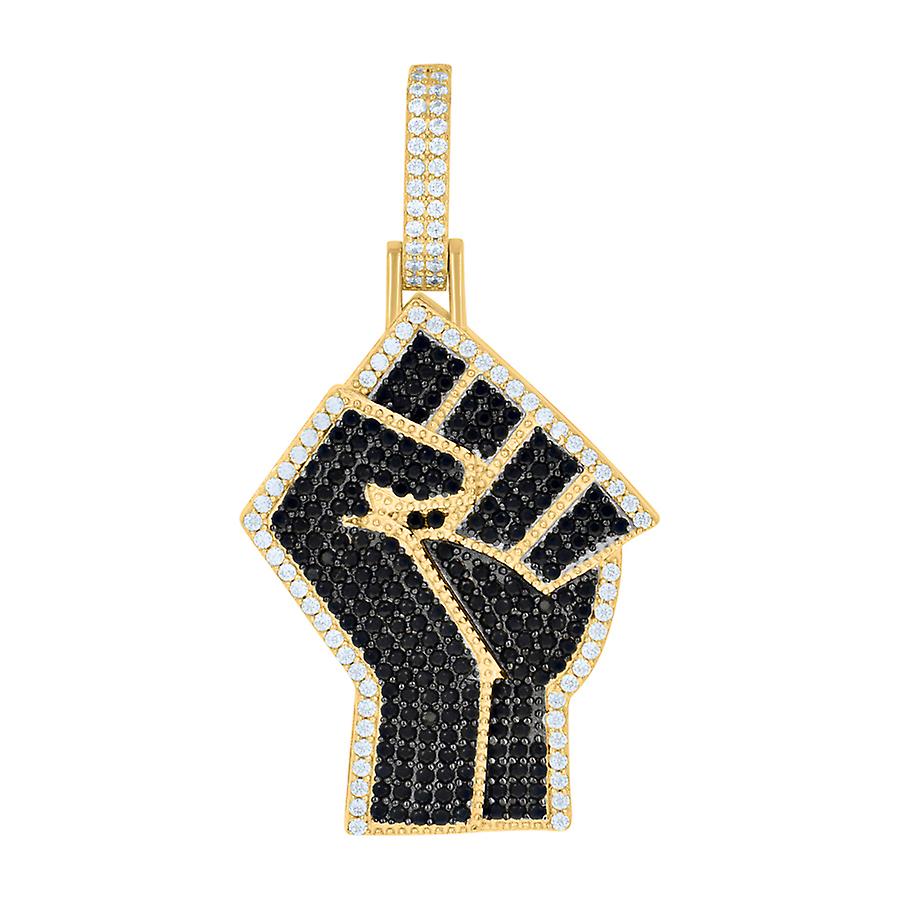925 Sterling Silver Yellow tone Mens White Black Cubic Zirconia Black Lives Matter Symbol Charm Pend Necklace for Men