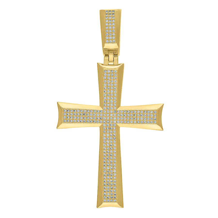 925 Sterling Silver Yellow tone Unisex Cubic Zirconia Cross Religious Charm Pendant Necklace Pendant for Women