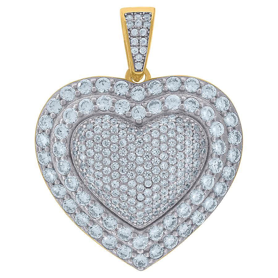 925 Sterling Silver Yellow tone Women Cubic Zirconia Love Heart Charm Pendant Necklace 37.8x29.2mm Wide Pendant for Wome