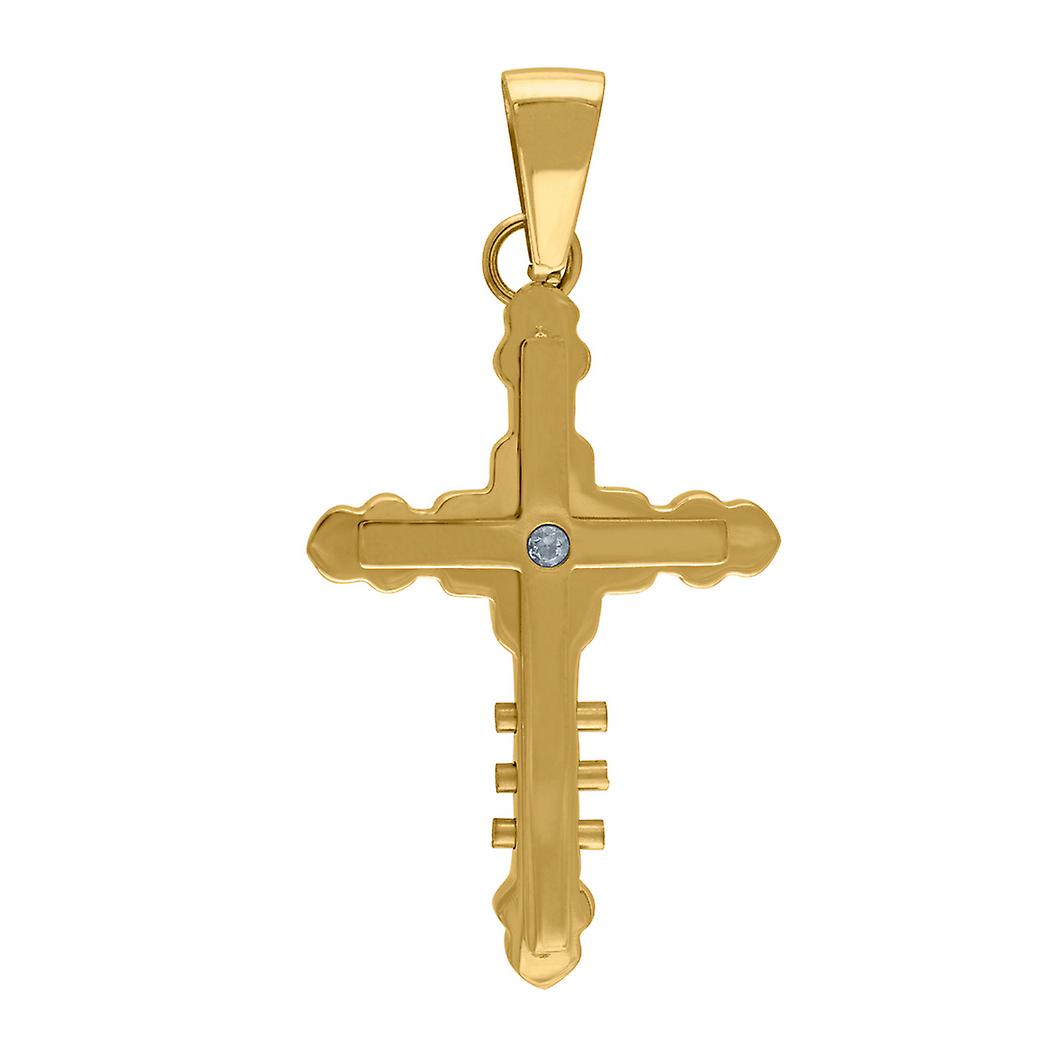 Stainless Steel Yellow-tone Mens Cubic Zirconia Cross Religious Charm Pendant-24x36mm Necklace for Men