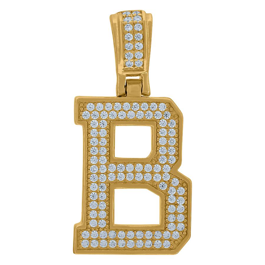 925 Sterling Silver Yellow tone Unisex Cubic Zirconia Initial Letter B Charm Pendant Necklace 30.3x14.5mm Wide Pendant f