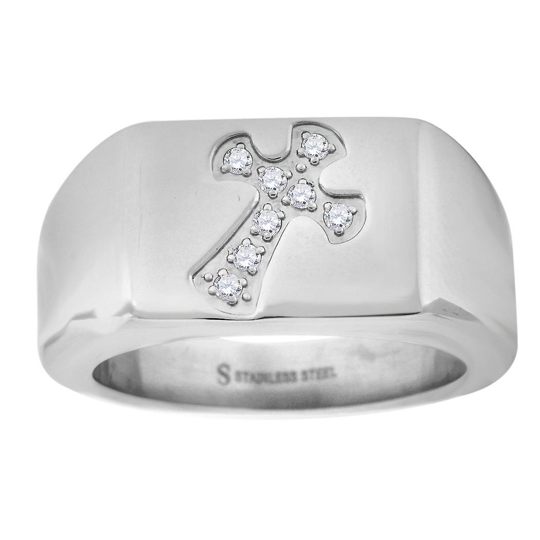Stainless Steel Mens Cubic Zirconia Religious Faith Cross Polished Band Comfort-Fit Fashion Band Ring 11.7mm Wide Weddin