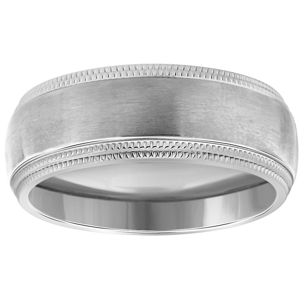 Stainless Steel Mens Brushed Milgrain Edge Comfort-fit Fashion Band Ring Wedding Band for Men - Ring Size: 7 to 14