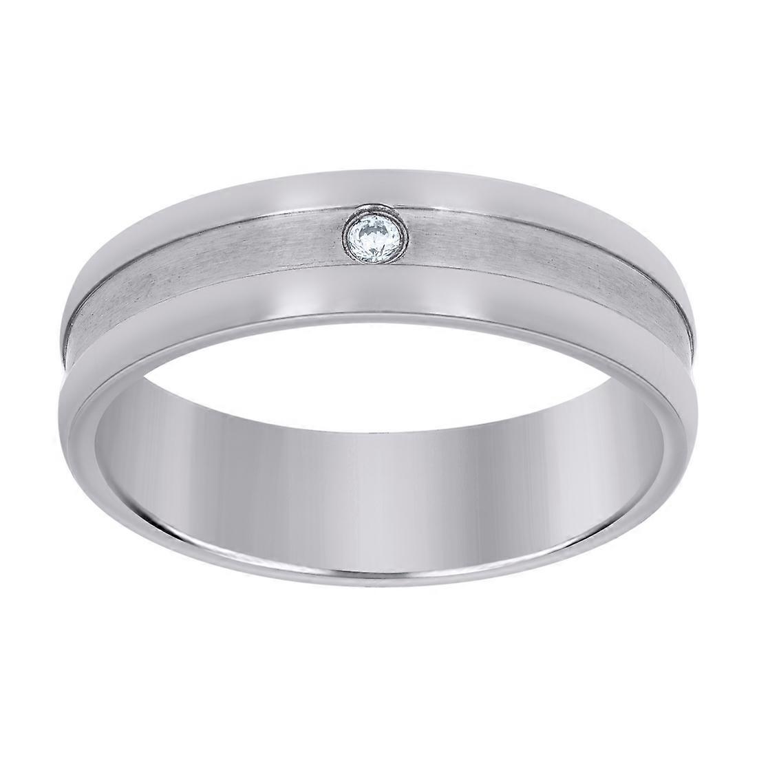 Stainless Steel Mens Cubic Zirconia Center Brushed Grooved Comfort-Fit Fashion Band Ring Wedding Band for Men - Ring Siz