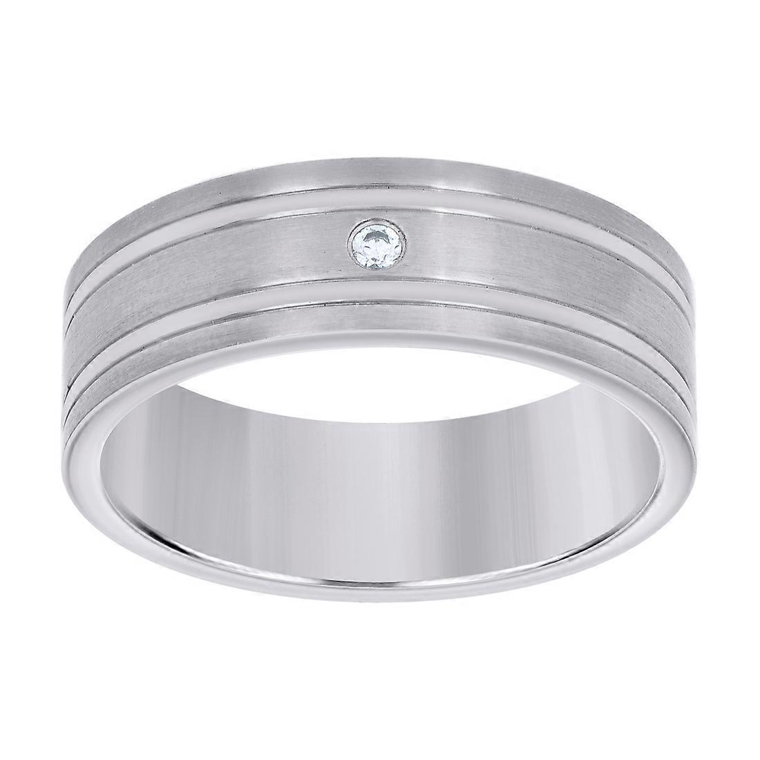 Stainless Steel Mens Cubic Zirconia Double Grooved Brushed Comfort-fit Fashion Band Ring Wedding Band for Men - Ring Siz