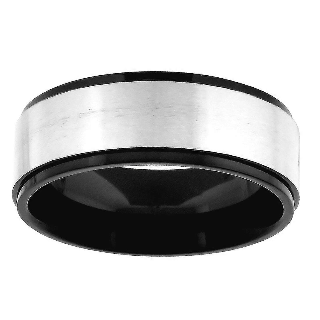 Stainless Steel Mens Two-tone Brushed Center Carbon Fiber Step Edges Comfort-fit Band Ring - In Solid Stainless Steel - - Ring Size Options: 10 11 12 13 14 7 8 9