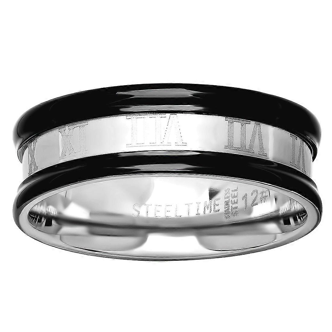 Stainless Steel Mens Two-tone Concave Roman Numbers Black Edges Comfort-fit Band Ring Wedding Band for Men - Ring Size: