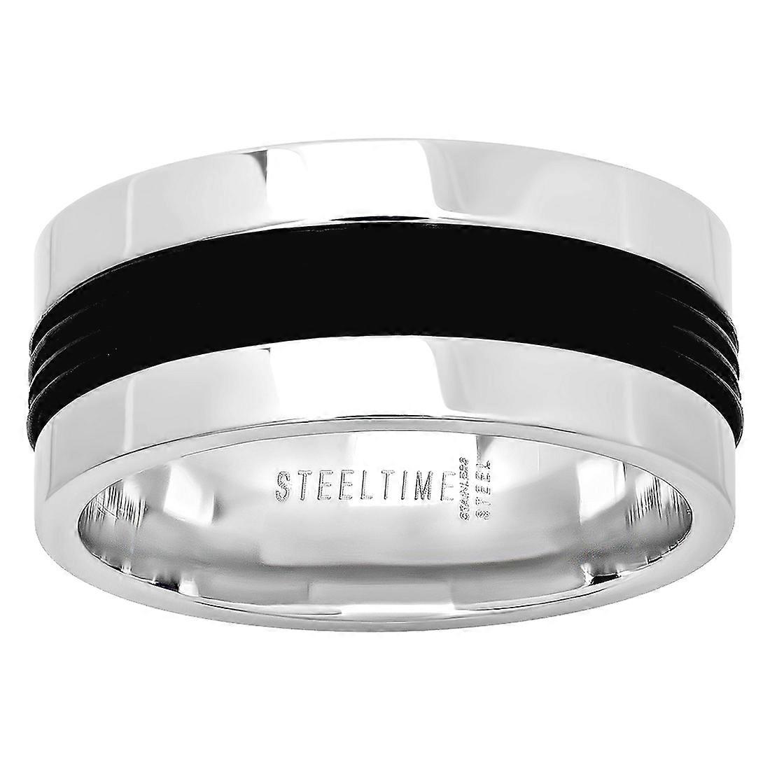 Stainless Steel Mens Grooved Black Center Comfort-fit Fashion Band Ring - In Solid Stainless Steel - - Ring Size Options: 10 11 12 9