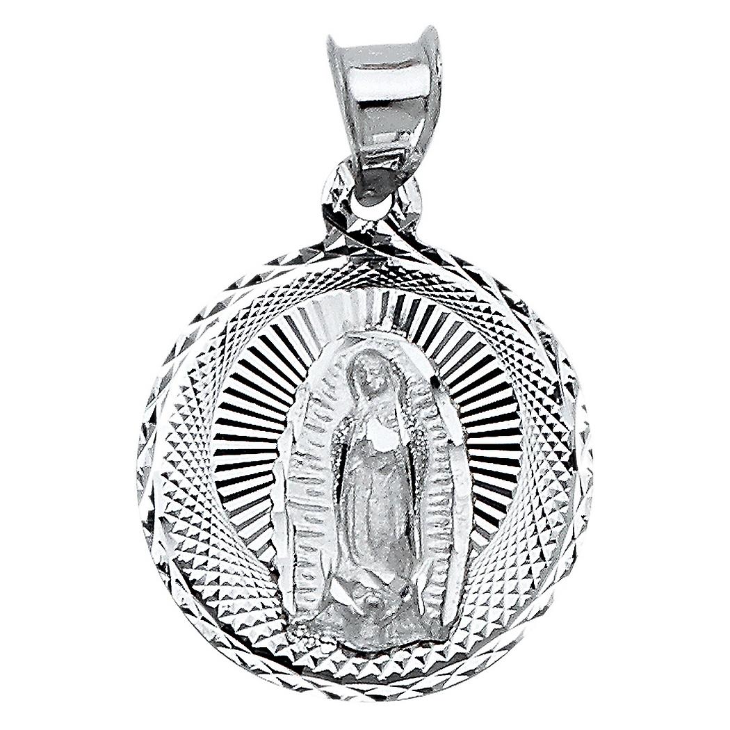 Collier pendentif Notre-Dame de Guadalupe en or blanc 14 carats, pendentif 16 x 16 mm pour femme - 1,6 gramme
