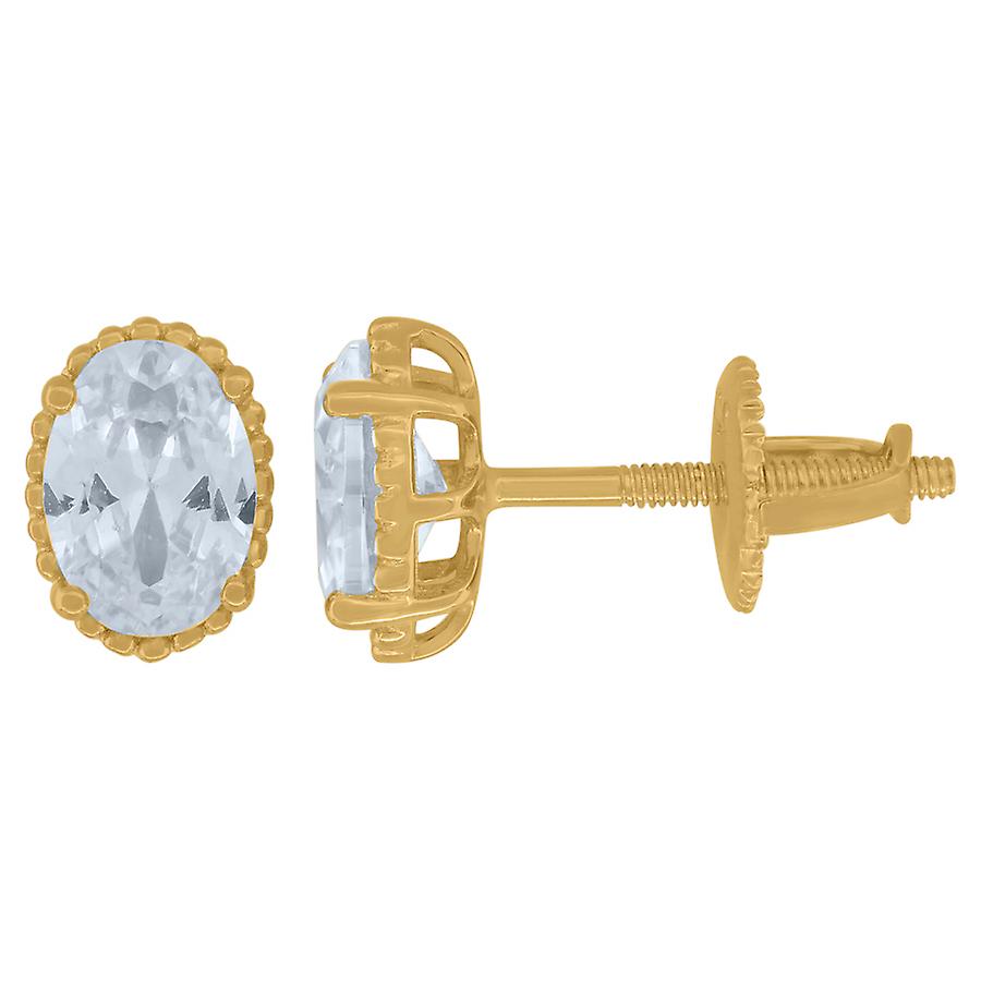 925 Sterling Silver Yellow tone Women Oval Cubic Zirconia Fashion Stud Earrings 8x5.9mm W Stud Earring for Women