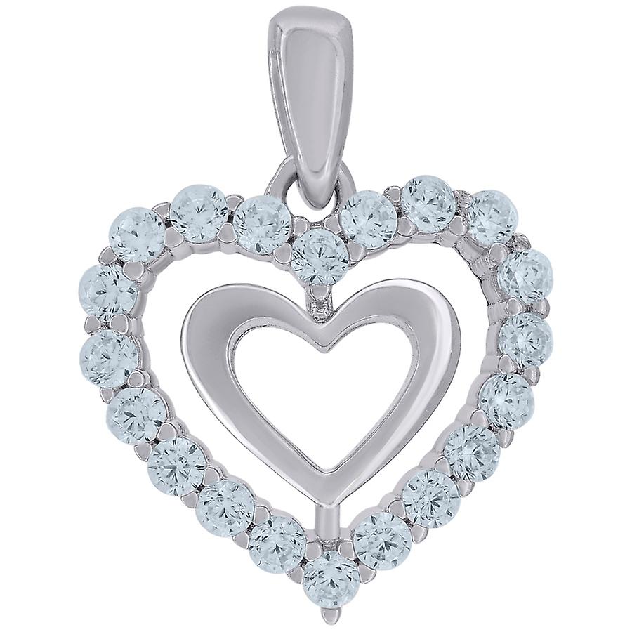 925 Sterling Silver Womens Cubic Zirconia Love Heart Charm Pendant Necklace 18x14.3mm Wide Pendant for Women