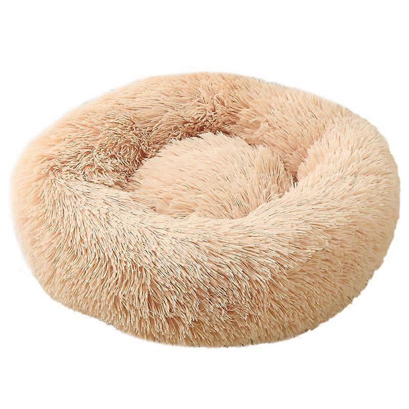 Improves Sleep QualityThe luxurious calming dog bed is ideal for pets who couldnt help curling up, and its raised rim creates a sense of security and provides reliable support for the head and neck. Our biege brown anti anxiety dog bed is made of soft and comfortable plush fabric and durable waterproof non-slip backing cloth filled with polypropylene cotton inside, making it soft when touching and you can put it anywhere you want. Easy to CleanThis dog donut cuddler has plush for the surface, comfortable and soft enough to make sure your pet can sleep as long as it wants. The calming bed for dogs is light and portable, suitable for travel. The transportation is very convenient and easy to carry. The marshmallow cat bed is safe in the washing machine. In order to keep it fluffy, we suggest that it's a better choice to hand wash.