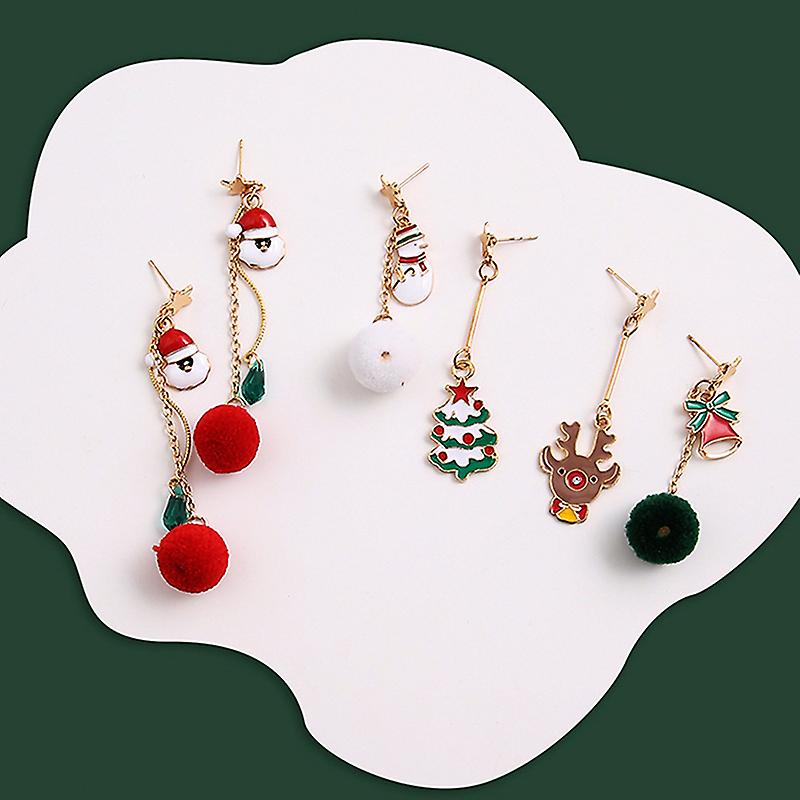 Christmas Tree Bells Elk Earrings For Women Hairball Asymmetry Drop Earrings