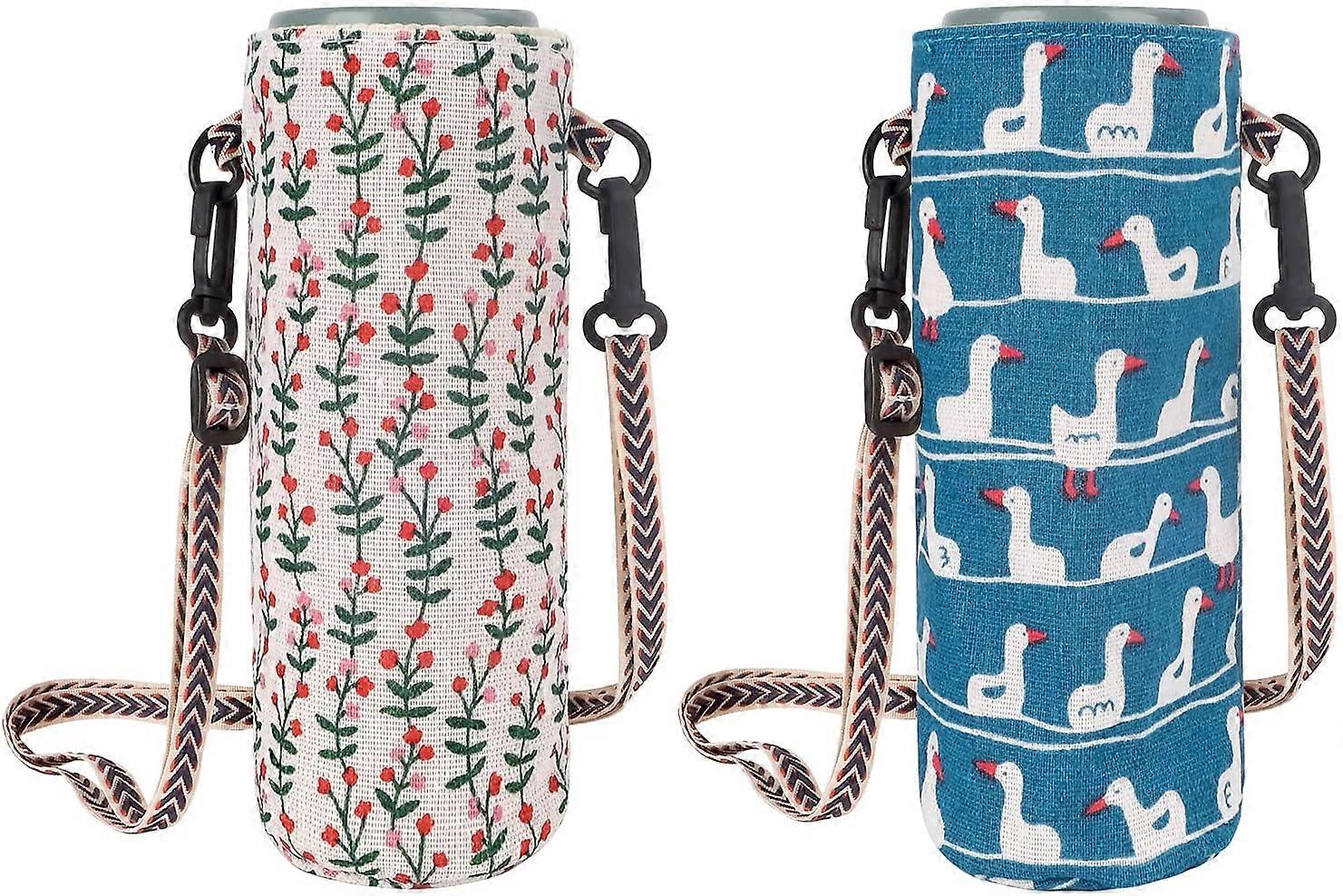 2-Piece Canvas Water Bottle Bag Blue Duck Forest Floral
