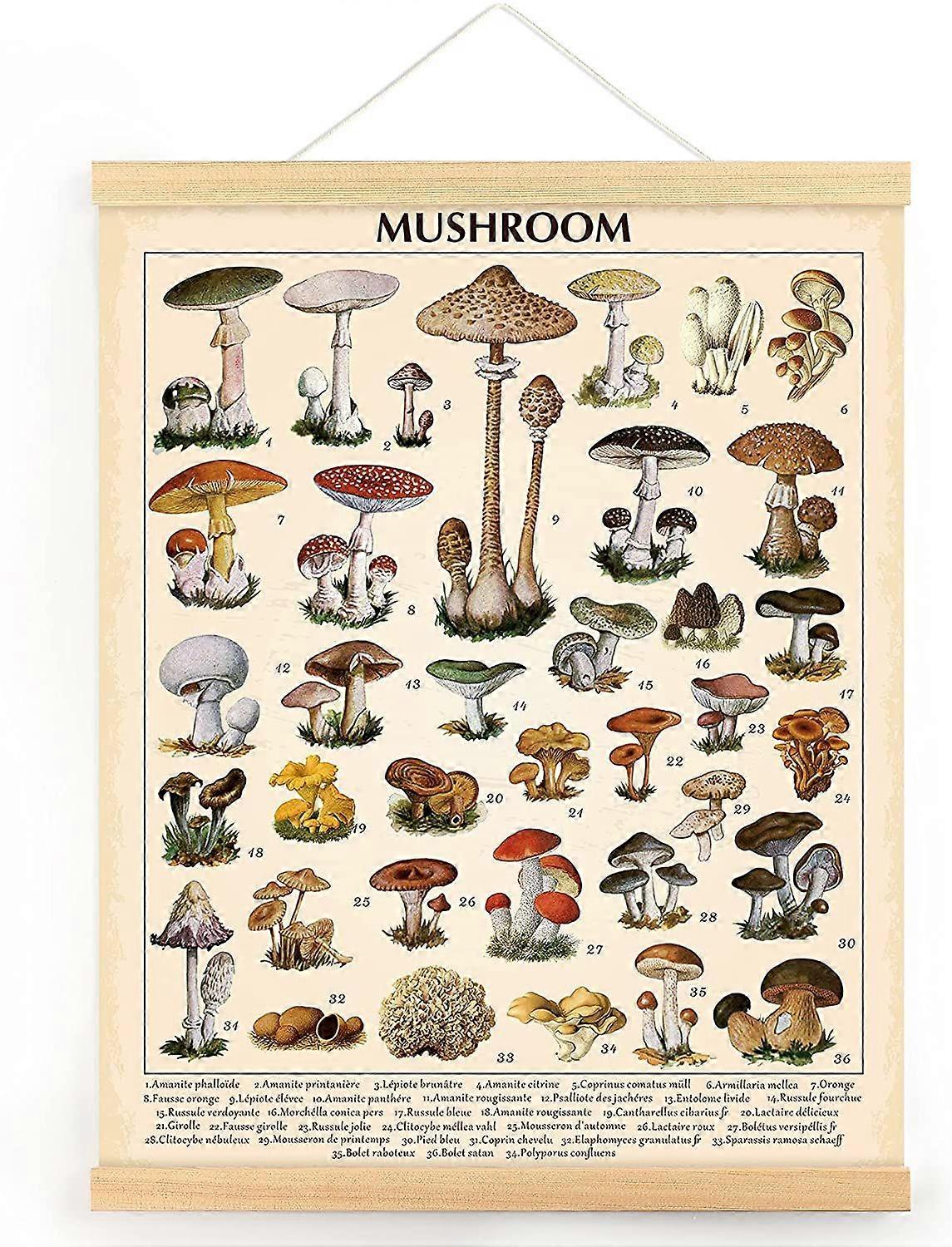 Fun design: The retro farmhouse mushroom poster design contains a variety of mushrooms and retro styles. An interesting design can create a retro atmosphere, attracting the attention of guests from a long distance, and your home decoration will be more elegantEducational tools: In addition to being beautiful wall decorations for living rooms, offices, classrooms, bedrooms, kitchens, sturdy rooms, wooden houses and playrooms, this alphabet mushroom poster is a teaching tool for people who learn mushroom species and appearances to expand your knowledgeWide range of applications: This retro mushroom wall hanging decoration has a wide range of uses, suitable for decorating children's rooms, nurseries, walls, cabinets, backyards, windowsills, dormitories, schools, classrooms, corridors, restaurants, libraries, hotels, and whatever you want to become Attractive place