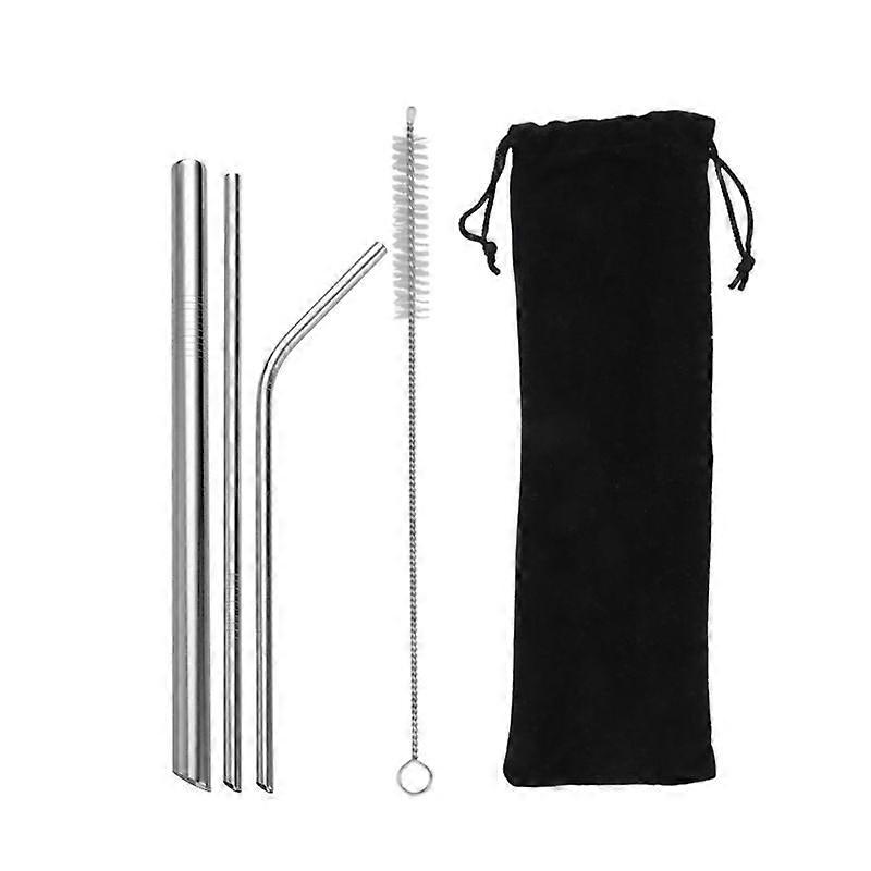 Silver 304 stainless steel oblique mouth straw carrying tube 4 pieces/2 sets