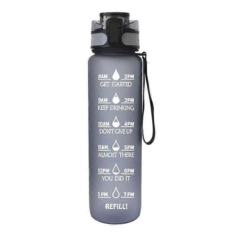 Grey 1000ML Sports Fitness Plastic Water Cup Frosted Handle Leakproof