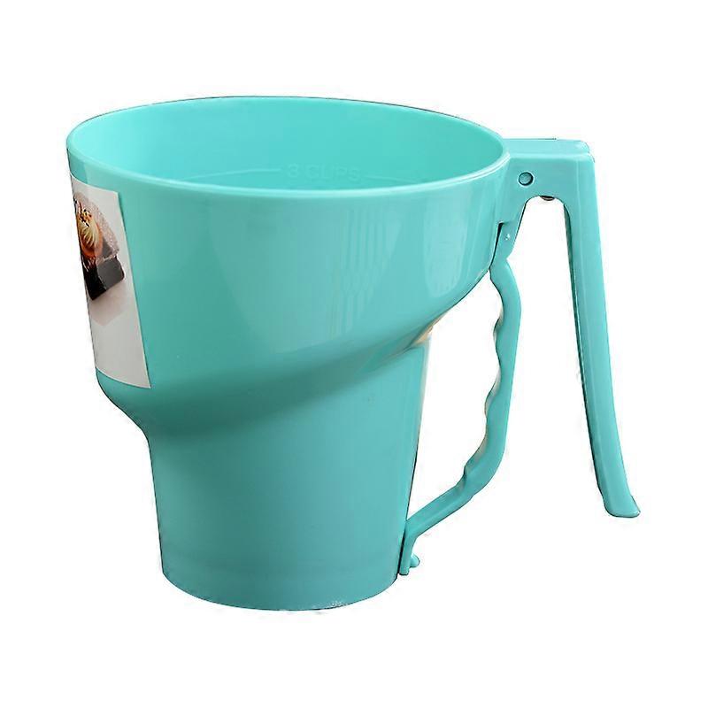 Name Candy Color Flour Sieve Weight 140g Capacity 375g Material plastic + stainless steel mesh Size top 13.5*bottom 7.5*height 14cm Uses Sifted flour batter cocoa powder matcha powder etc.