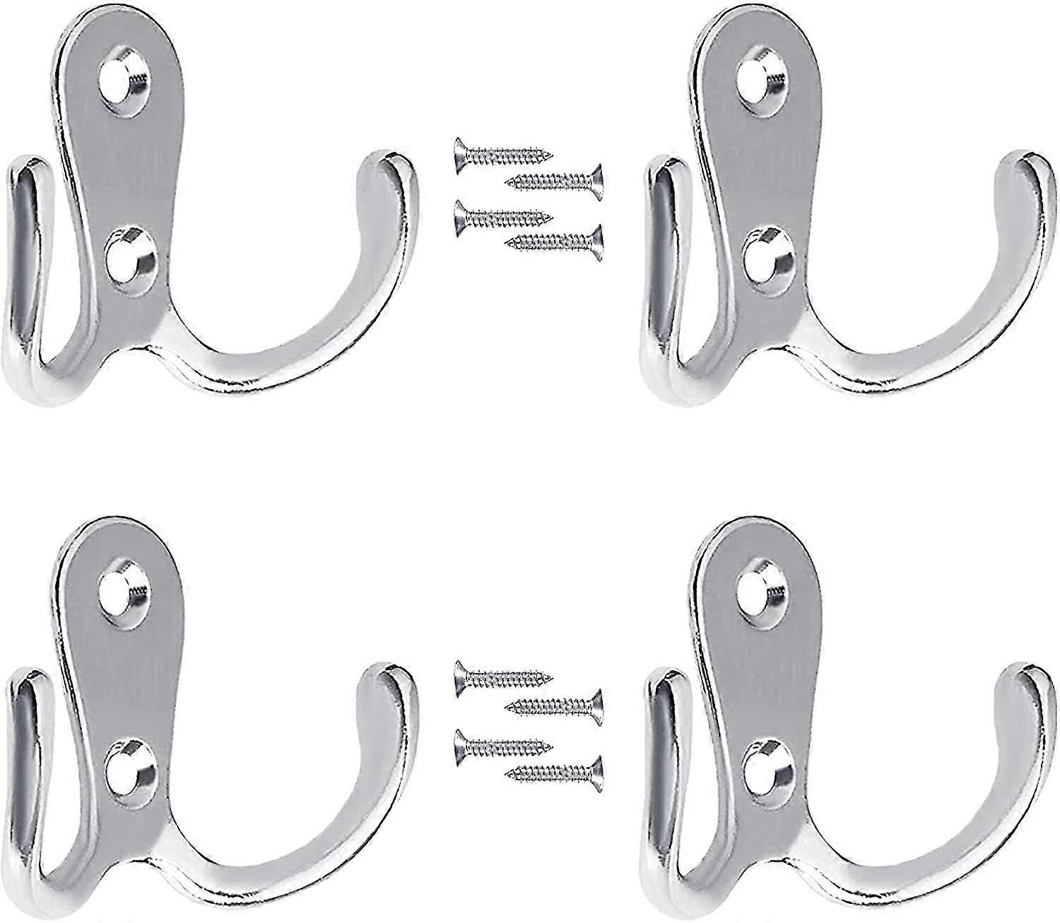 YH 4 Pcs Double Prong Robe Hooks, Dual Coat Hooks Wall Mounted Hanging Clothes For Bathroom Bedroom Door Wall Retro Metal Cloth Hanger Double Coat Hoo