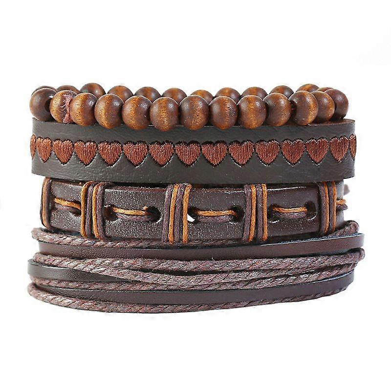 Wood bead edicow bracelet 4-piece set - Beaded woven bracelet set - Beaded Cowhide Bracelet Set