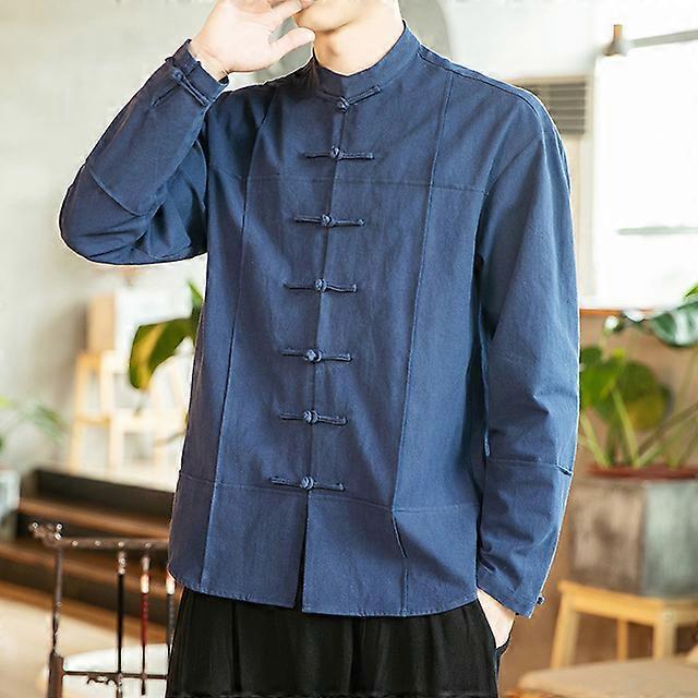 Chinese Style Men's Clothing Shirt Dishcoil Button Tang Suit Hanfu Traditional Chinese Tops Stand Collar Long Sleeve Coat