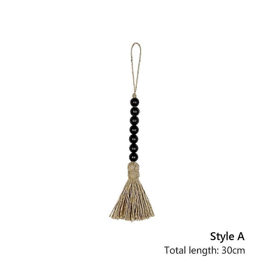 Wood Bead Garlands Black Rustic Tassel DIY macrame Wall Hanging Ornament Decoration Woven Basket Handmade home Bohemia decor