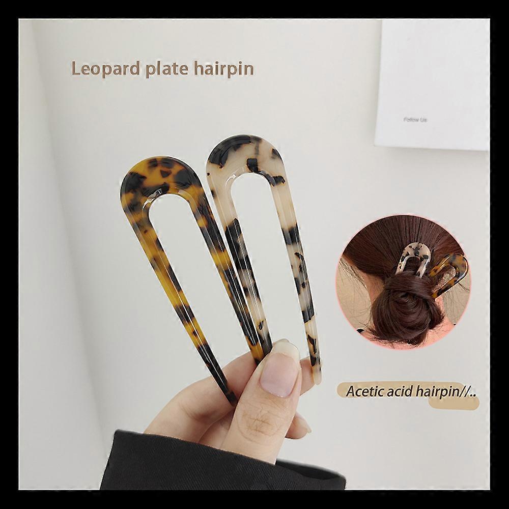 1/2Pcs Shell U Shaped Hairpin Retro Leopard Plate Fork Sticks Women Accessories