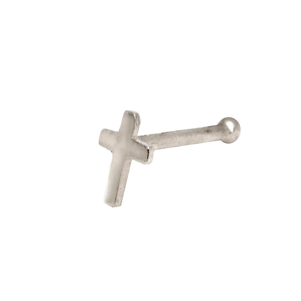 Jewelryweb Solid 14K Yellow or White Gold 2-mm 20 Gauge Polished Religious Faith Cross Nose Stud Body Piercing Stud for