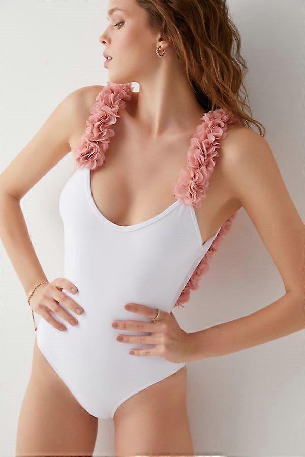 One Piece Swimsuit for Women Flowers Petals Bikini Set Mommy and Me Bathing Suits Family Matching Swimwear - White