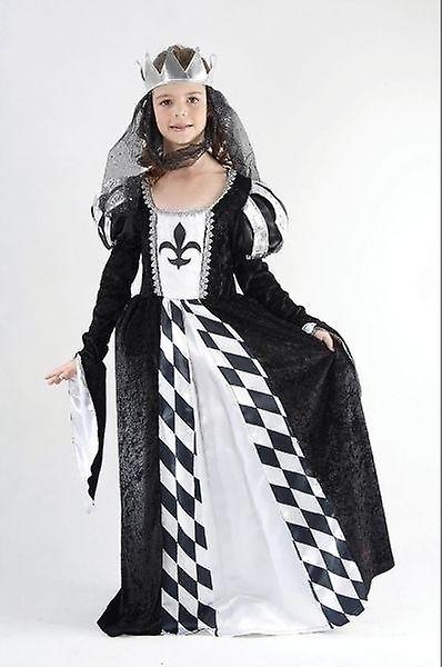 Chess Queen (m). Chess Queen Costume. The Game Is On . Glide Into The Party In This Luxurious, Black Velvet Dress Which Has A Slim Fitting, Stretch Bodice, Trimmed With Silver Braid and A Central Satin Panel Decorated With A Fleur De Lys Applique. Also Included Is A Silver, Fabric Crown With A Black, Sparkling, Semi- Sheer Scarf To Be Attached With Velcro. A Lavish and Exquisite Costume Suitable For Medieval Fayres, Renaissance and Many Historical Themed Occasions. Includes: Dress and Matching Headpiece . Pack Contents : Dress, Headpiece. Female / Girls - Kids - Medium Colour : Black/ White/ Grey. Size : To Fit Child Of Height 122cm- 134cm Barcode / Ean: 5051090078306 Clothing & Accessories > Costumes & Accessories > Costumes Age Group: Kids Main Colour: Black