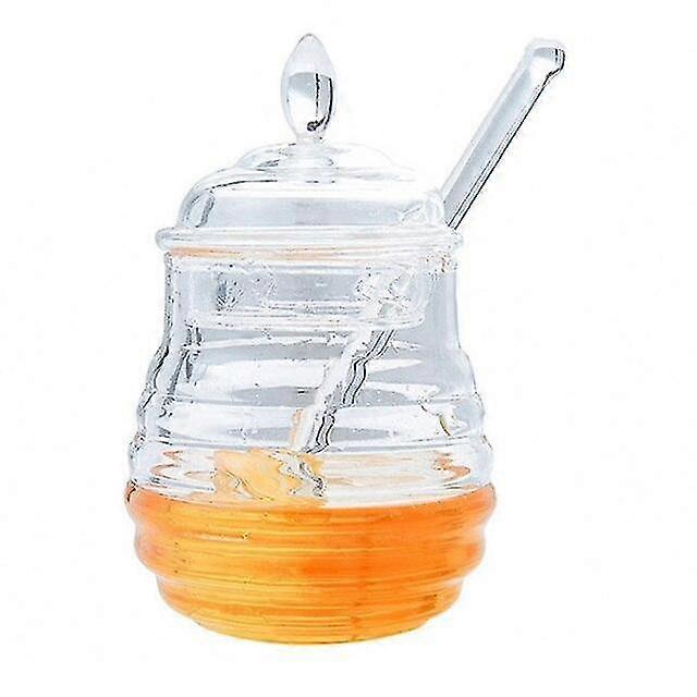 Honey Pot Clear Jar With Dipper Lid Beehive Style For Home Kitchen | Sugar & Creamer Pots